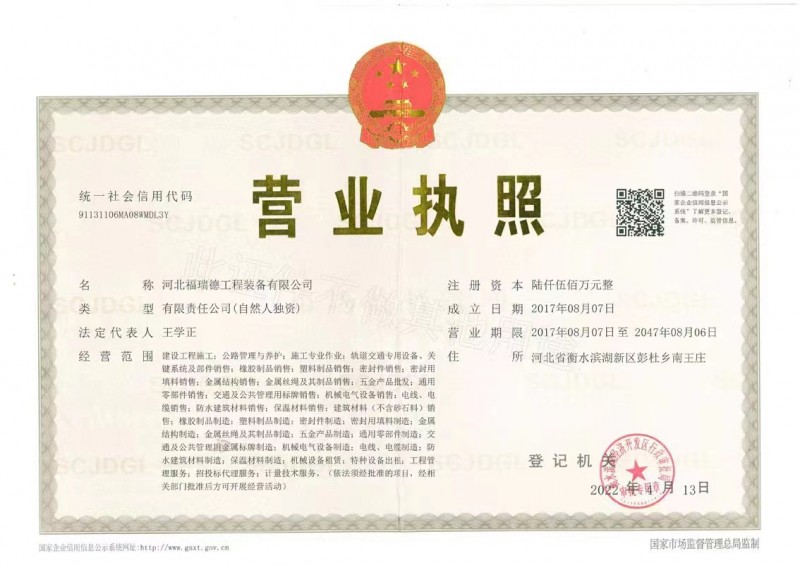 發(fā)證機(jī)構(gòu):   衡水濱湖經(jīng)濟(jì)開(kāi)發(fā)區(qū)行政審批局 發(fā)證時(shí)間 :   2022-04-13