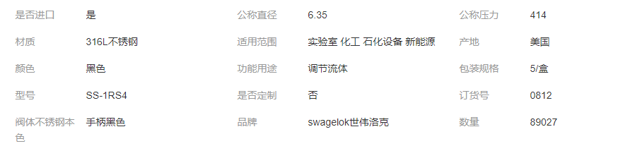 SS-1RS4美國swagelok世偉洛克卡套高溫針型閥