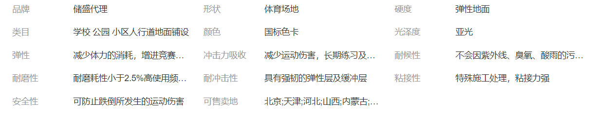 塑膠跑道的主要材料:雙組份聚氨酯漿料--主要用于全塑型塑膠跑道、混合型塑膠跑道、復(fù)合型塑膠跑道單組份聚氨酯膠水--主要用于復(fù)合型塑膠跑道、透氣型塑膠跑道、EDPM塑膠跑道PU顆粒、EDPM顆粒、黑色廢輪胎顆粒等
